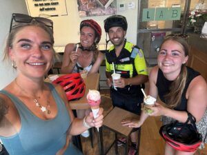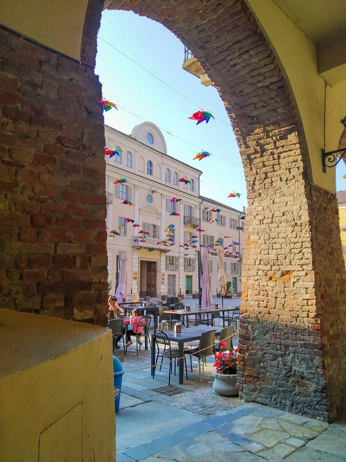 Riprendiamo il nostro cammino, invertiamo la rotta e in un saliscendi leggero ed appagante, siamo nuovamente ad Alba, la “città delle 100 torri“: passaggio davanti all’enorme cattedrale del centro, sosta gelato e rientro al noleggio e-bike, che ci attende per la prossima avventura.